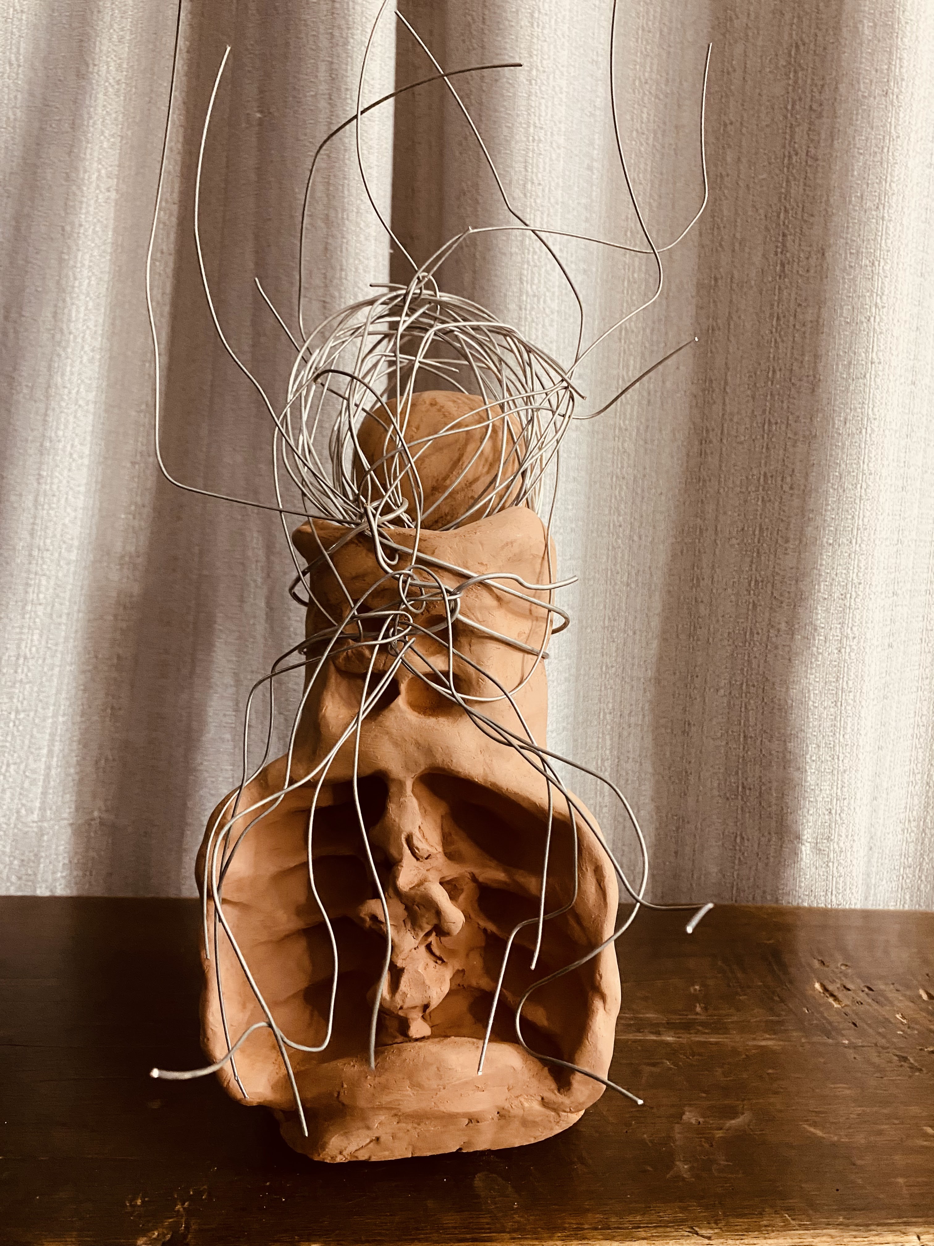 Sonhador, 2023. Terracota e arame (Modelagem de criação)