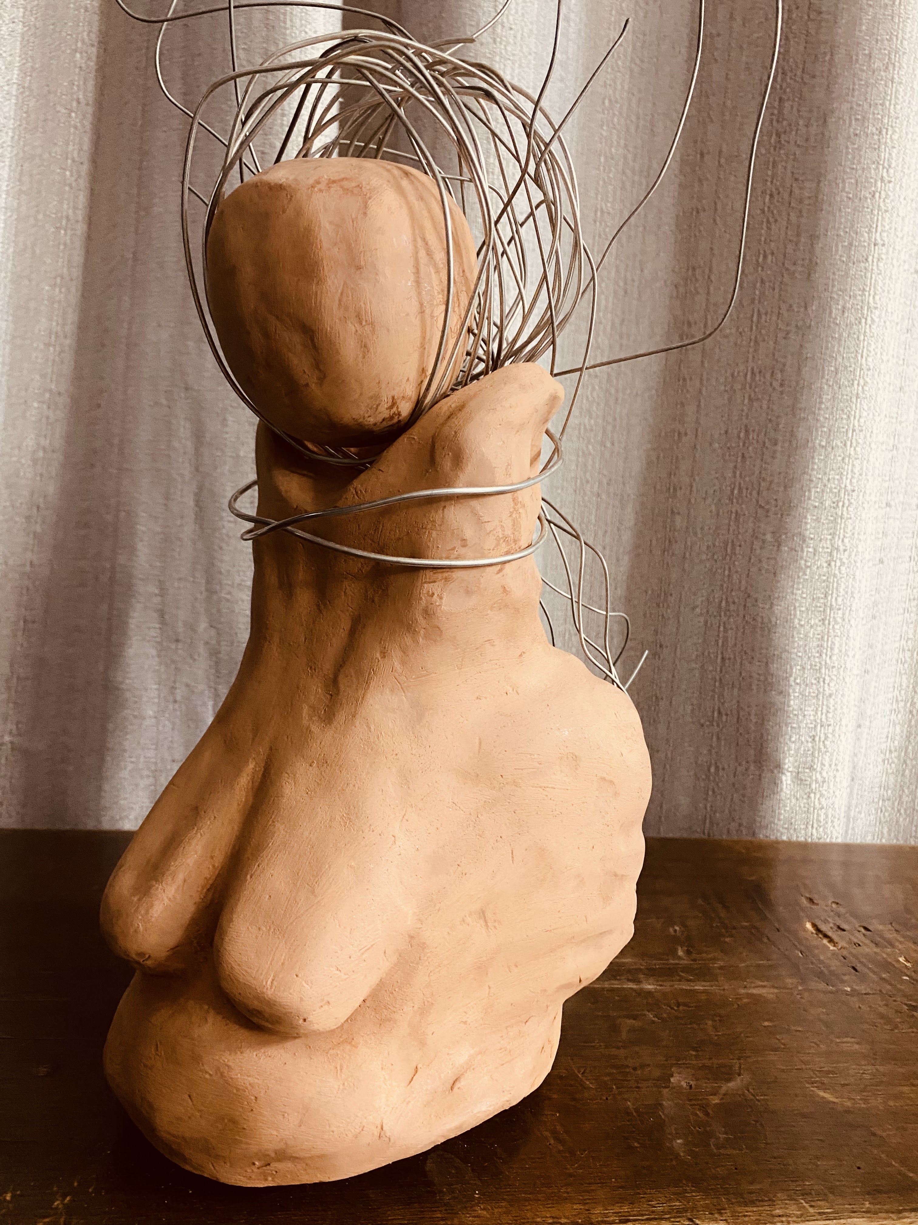 O Renascimento de Eva, 2023 – Terracota e arame (Escultura de criação a partir da observação do corpo. Estudo sobre modelagem e processo criativo)