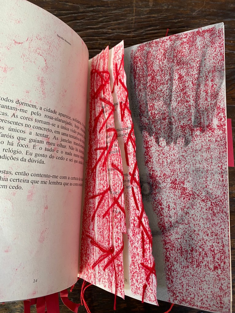 E, nas palavras de Llensol, ”no fim da tarde desejaria lentamente bordar páginas de livros, e guardá-las” (p. 21).