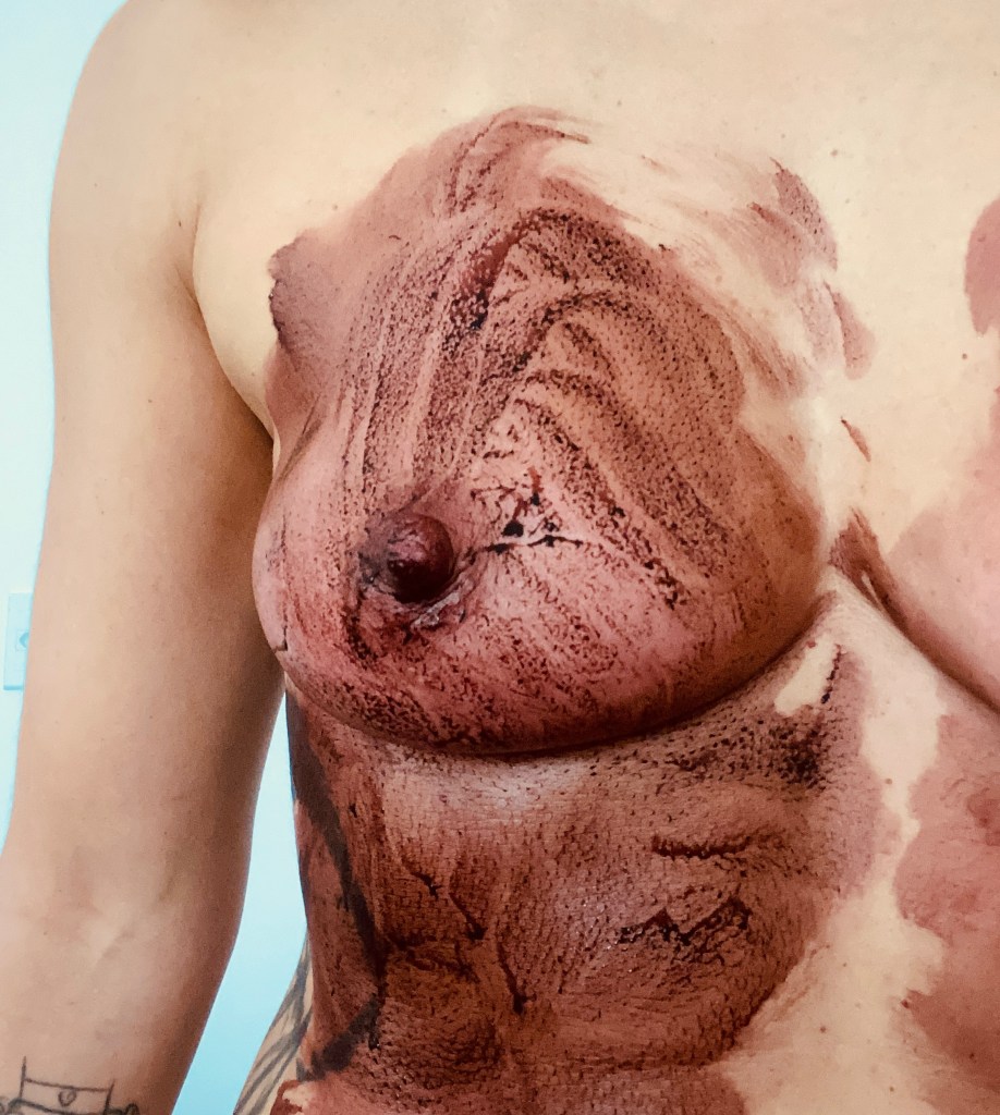 É possível enxergar as cicatrizes. Assim como sentir o cheiro do sangue. Mas a dor se dilui no remendo do corpo capturado, liberto pela costura.