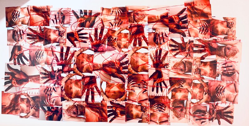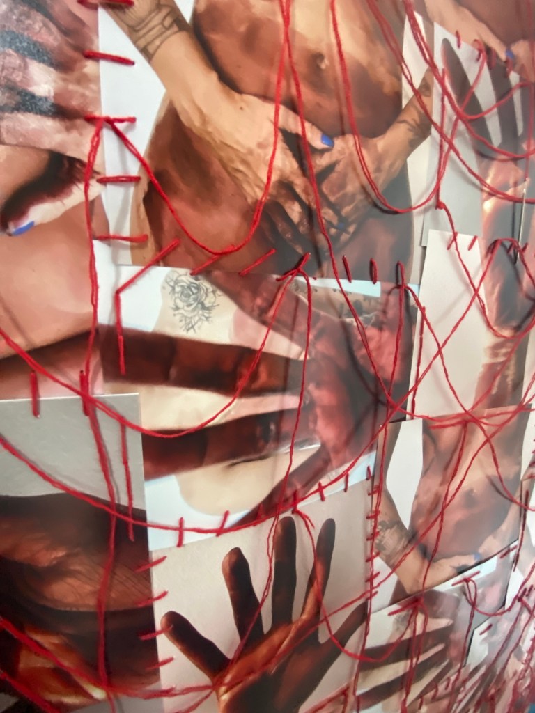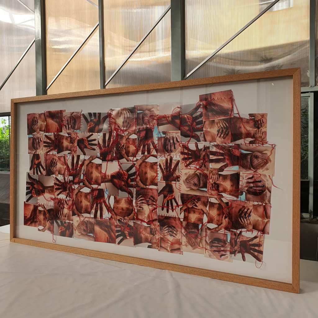 Até que o registro torna possível olhar para o tempo congelado. Reconstrói significados em realidades tortuosas. A linha costura partes que não se encaixam. Camadas de pele passam a dialogar. Corpo reconstruído em fragmentos.